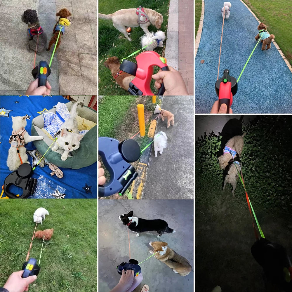 ★★★★★Muy práctico y cómodo. Antes era un caos salir con mis dos perros, ahora todo es mucho más fácil. El sistema retráctil funciona súper bien.